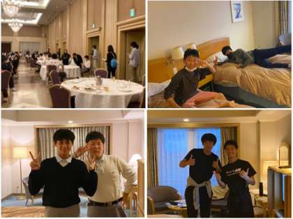 昨日の夕食の1コマとホテルの様子です。