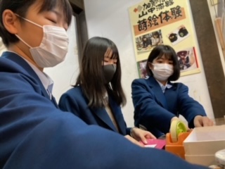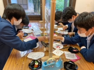 午後から訪れた加賀伝統工芸村“ゆのくにの森”では,伝統文化体験を行いました。金箔はり,輪島塗,加賀友禅,九谷焼,ガラス工芸,山中漆器などの伝統文化体験があり,真剣な表情で取り組んでいる姿が印象的です。またお土産を買ったり,友達や先生と散策したりと楽しい時間を過ごしたようです。