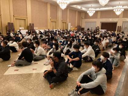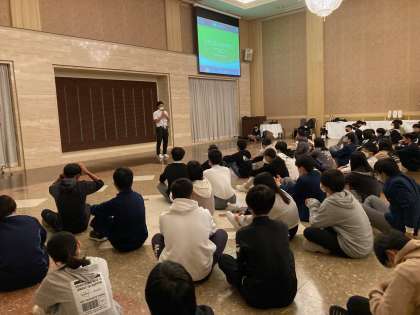 昨日の夜に行われた学年レクの様子を伝えていきます。開会式です。