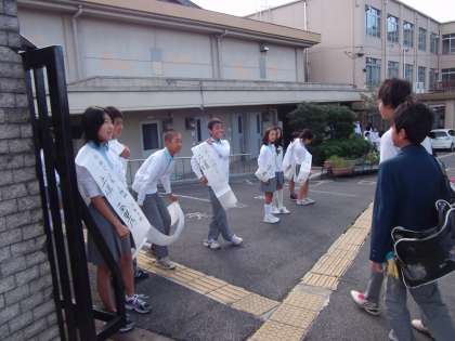 朝のあいさつ運動の様子です。