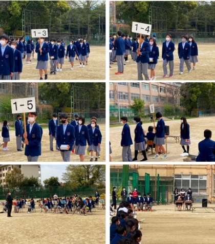 一時間目の前半を活用し,グランドで待つ2・3年生の中を1年生が恥ずかしそうな表情と少し不安な様子で入場してきました。