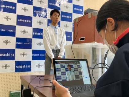 本来ならば全校生徒が一堂に体育館に集まり,全員で確認する場面を持ってきましたが,コロナ禍の下,今年度もライブ配信にて各教室で学習をしました。