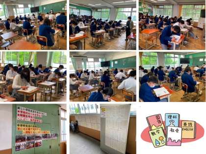 一時間目より実施している3年生の様子を見ていると全員が真剣に問題と向き合っていました。3年生にとってはいよいよ進路選択,決定そして実現に向けての取り組みが始まっています。どうか自分の進路を絶対に見失うことなく,この機会に苦手やつまづきを発見し,その対策に励んでほしいと思います。
