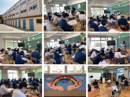中学生として初めてテストに取組んだ一年生の様子を見ていると,「シーン」とした教室で黙々と出題された問題に取組んでいました。時折,手を挙げて質問する姿も見られ,どのクラスも中学生として正しく受験することができていました。