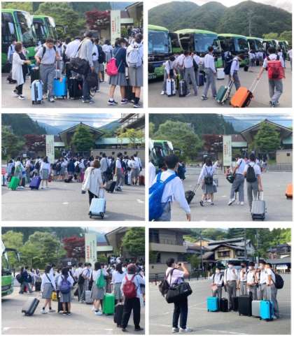 1日目の行程を無事終了し,宿泊場所であるホテル天心に到着しました。この後,入浴,夕食を経て,お待ちかねの学年レクレーションが行われます。3年生全員元気で活動しています。