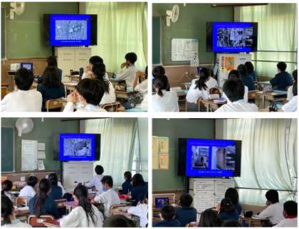 1年生は総合的な学習の時間で,『自分たちの町のステキをさがそう』をテーマに地域調べにとりくんでいます。本日は山科中学校区と山科中学校の歴史について学ぶため,「ふるさとの会」の浅井定雄様(ペンネーム・鏡山二郎様)にお越しいただき,中世から戦前・戦後にかけての主に歴史のお話をしていただきました。リモートによる講演でしたが,スライド資料と配布資料も準備いただき,校区と中学校の歴史についてわかりやすく説明いただきました。来月にはインタビュー活動も予定されています。1年生のみなさんの,今後の学習の成果が楽しみです。
