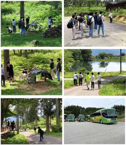 楽しかった料理体験も終了し,移動までの時間で生徒は会場近辺を思い思いに散策していました。美しい自然に囲まれた環境で,ゆったりとした時間を過ごせたようです。現在昼食会場へ移動しています。