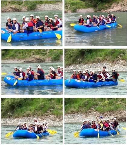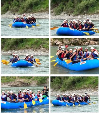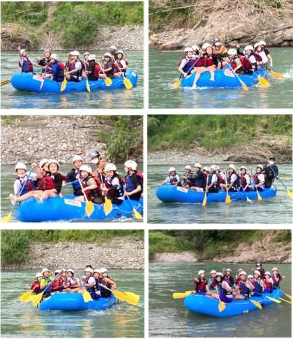 まもなくラフティングのゴール地点に到着です。みんな本当に楽しそうです。