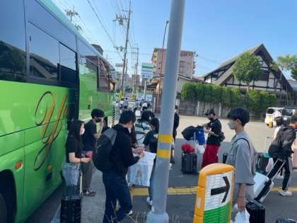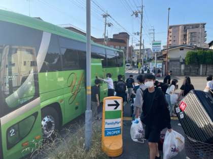 修学旅行団一行は,無事解散場所に到着しました。生徒はそれぞれ帰路についています。