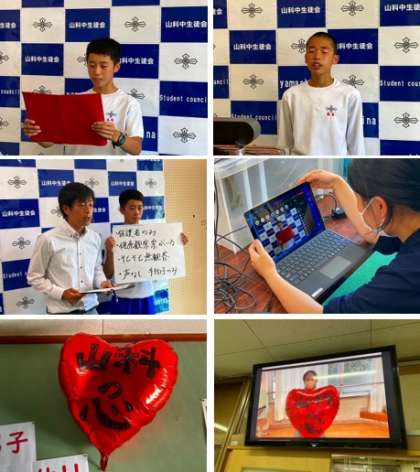 また、各部から大会に挑む決意や1・2年生有志からの心温まる応援エールを動画にまとめ、全員が各教室で視聴し、拍手が鳴り響きました。