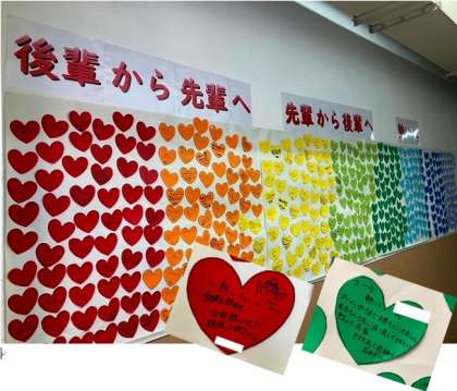 今回は先輩から後輩へ、後輩から先輩へ「熱い心」を伝える一人一人の心を込めたメッセージが綺麗に貼られています。メッセージには「夏季大会での活躍祈願」や「進路達成への励まし」「今後の学校を担う後輩への激励」等、一つ一つ大切な思いが伝わってきました。