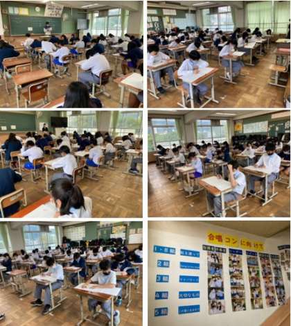 特に3年生にとっては進路希望を決める目安となる大切なテストでもあります。回答する鉛筆の音がどの教室でも聞かれ、響き、その真剣さがヒシヒシと伝わってきました。
