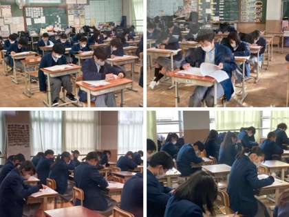 本日5・6限目に1・2年生を対象にした「学習確認プログラム」を実施いたしました。今日は国語、社会の2教科でしたが、明日は数学、理科、英語の3教科を行います。