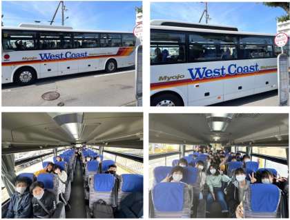 本日から、2泊3日の行程で3年生が長野県(白馬村・松本市方面)で修学旅行を実施します。天候にも恵まれ、先ほど無事出発しました。集合時間に遅れる生徒もおらず、元気そうな様子で安心しました。3年生の皆さん、3日間の修学旅行を思い出に残る楽しい時間にしてくださいね。