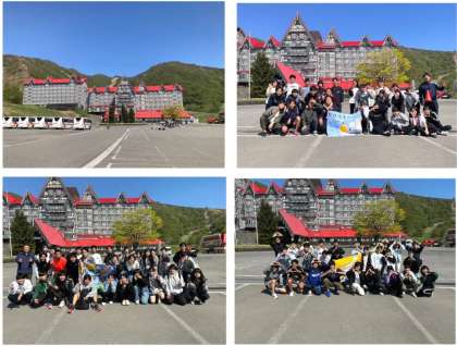 出発時に撮影した学級写真です。現在修学旅行団は無事体験場所へ到着し、体験活動をスタートしている模様です。