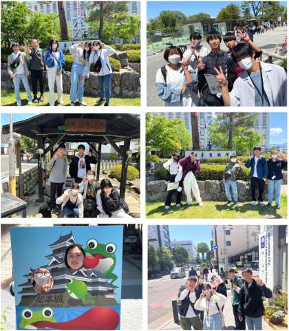松本城を背景に写真を撮ることや、時計台の時計の上がどのような形か調べること、交差点にあるえびす様の名前を調べること、都計博物館の外観にある時計の個数を調べること、など、松本ならではのミッションに挑戦しながら、班別で松本市内を散策しました。