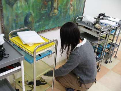 美容室にて。おしゃれな服でお仕事です。