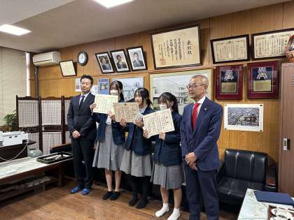 本日昼休みに、東山税務署・東山納税貯蓄組合連合会の方に来校いただき、本校3年生3名へ「中学生の税についての作文」における表彰を行っていただきました。「東山納税貯蓄組合連合会会長賞」「京都市東山区・山科区租税教育推進協議会会長賞」「東山納税貯蓄組合連合会優秀賞」をそれぞれ生徒へ授与いただきました。3年生社会科における取組において、本校を代表して受賞した賞です。受賞された3名の生徒の皆さん、おめでとうございます。これからも学習の成果を様々な形で発表してください。