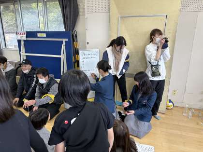 1月20日(土)午後、百々児童館において実施された新春まつりに、本校の生徒会本部役員がボランティアとして参加しました。非常に多くの小学生たちが参加する中、ペットボトルボーリングと数字遊びで子どもたちに楽しんでもらうことができました。会の最後には地域の方がご準備いただいた豚汁もいただき、生徒たちにとっても有意義な時間となりました。児童館の関係の皆様、貴重な機会をいただきありがとうございました。生徒会本部役員の皆さん、これからも山科中学校の代表として様々な取組で活躍してくださいね。