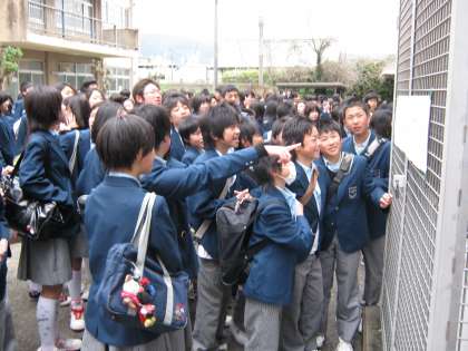 8:30より新2・3年のクラス発表が行われると、2つの校舎に挟まれた中庭にはたくさんの歓声が響き渡りました。