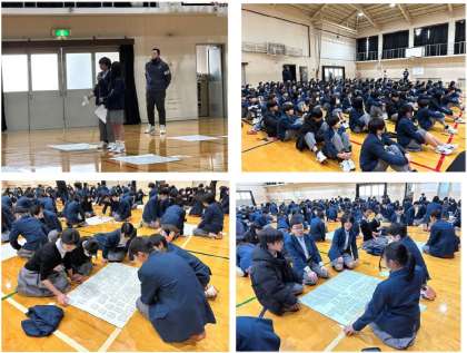 本日午前中、1・2年生で百人一首大会を行いました。1・2時間目に1年生が、3・4時間目に2年生が、それぞれ実施しました。