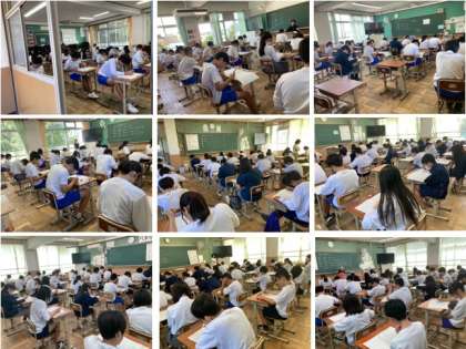 6月19日より第2回テストを3日間の計画で実施しています。初日となった今日、どの教室も生徒たちは各教科の問題を一生懸命に解き、解答用紙に記述している姿を拝見いたしました。