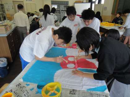 3年生では、午後からの時間を利用して、学級旗を作成しています。