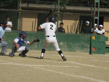 本校野球部は桃山中学校と対戦し、エースY君の力投で何回もピンチを切り抜け善戦しましたが、延長9回相手のスクイズによりサヨナラ負け(0対1)を喫してしまいました。