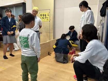 新生徒会本部がスタートし初めての校外での催しに最初は緊張していましたが、時間の経過とともに中学生も児童と一緒に楽しむことができました。