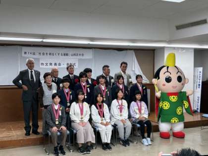 11月27日、午後3時45分から山科区役所大会議室におきまして「第74回「社会を明るくする運動」山科区大会 作文発表会・表彰式」が盛大に開催され、山科区内の6小学校と5中学校より代表児童生徒が堂々と作文発表会・表彰式に参加しました。