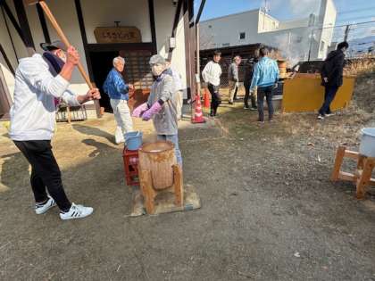 三連休中の1月12日(日曜日)、百々学区恒例の「もちつき大会」が百々小学校ふるさとの家において盛大に開催され、大賑わいでした。