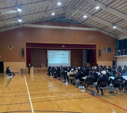 本日の14時より、体育館にて保護者の方対象の「進路説明会」と「修学旅行説明会」を実施しました。前半には、進路担当より本校卒業生の進路状況や進路選択の考え方、入試制度や奨学金などについて、後半は、3年学年主任と近畿日本ツーリストの担当者様より修学旅行の目的や方面・日程、服装や持ち物、健康面や経費、保険やキャンセル料などについて説明させていただきました。これからいろんな疑問なども出てくると思いますので、何かありましたら担任を窓口にしてご連絡ください。本日はありがとうございました。