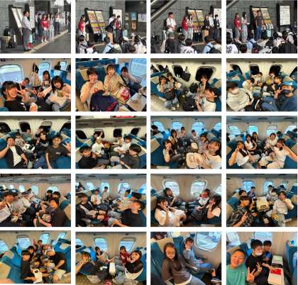 近畿日本ツーリストと富士写真工芸社の方にお世話になります。よろしくお願いします。新幹線での様子です。みんな楽しそうです。