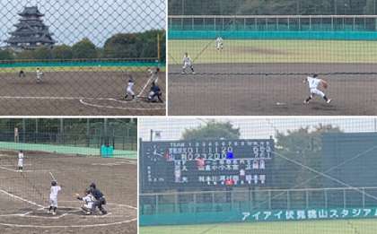 10月25日(土)伏見桃山球場において、野球部の準決勝戦が行われました。相手チームは京都京北小中学校です。点数をとってはとりかえされるという展開の中、両チームともよく声を出し、練習の成果を十分に発揮した好ゲームとなりました。途中、同点に追いつかれ、なおも満塁のピンチの場面、監督からピッチャー交代の指示が出ました。その後、とてつもない緊張感とプレッシャーの中、見事なピッチングとチームの連係プレーで乗り越えました。難しい流れの中、部員の個性を生かした采配と、スリーアウトを取り、ベンチに戻ってくるピッチャーにみんなでかけよって勇気をたたえあう場面が印象的でした。ゲーム終盤にも何度もピンチが来ましたが、みんなでつなぎ、「ここで一本」を願う場面でヒットを放つ攻撃力と、今度は戻った先発ピッチャーによる一瞬のタイミングを見逃さない見事なけんせい球でアウトをとるなど、勝利に向かうチーム全員の集中力がみなぎる、まさに野球のおもしろさが凝縮されたような試合となりました。次はいよいよ決勝戦です。しっかり準備して「山科の心」を胸におもいきり挑みましょう。