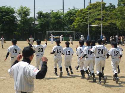 5月5日は勧修中学校で3回戦が行われ、シード校の洛北中学校に2対1で勝利し、ベスト8進出を果たしました。準々決勝は5月18日(土)、会場は左京区の岡崎グラウンドで行われます。