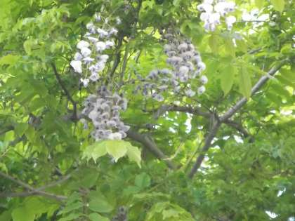 5月初め、グラウンドの片隅、バックネットの近くに藤の花を見つけました。日本では園芸植物として藤棚に仕立てられることが多いですが、本校のものは自生という感じで他の樹木や金網に蔓(つる)が巻き付いてます。巻き付かれた樹木は大きく曲がってます。