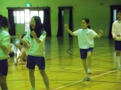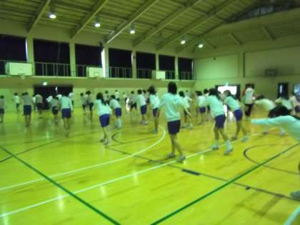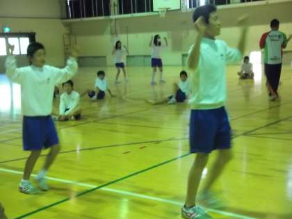 2年生は体育の時間、体育大会に向けてダンスの練習です。思いっきり腕も足も伸ばして表情豊かに踊れている人もいましたが、まだまだ恥ずかしそうにしている人も・・・。