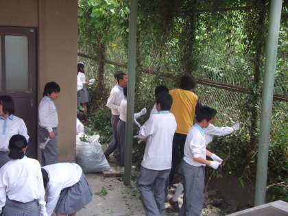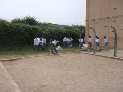 1年生はグラウンド西側、1年生の校舎裏、テニスコート周辺と体育大会に向けてグラウンドの石拾いを行いました。