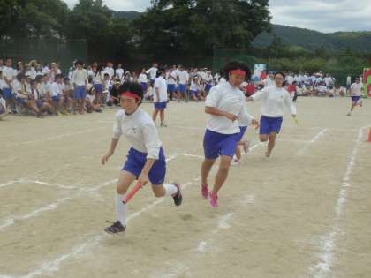 学級対抗男子リレー、女子リレー、混合リレーともに熱戦でした。どのクラスも1秒でも一歩でも速く次理1にバトンを渡そうと、熱く闘いました!