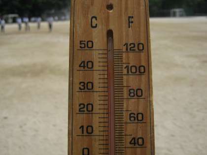 昨日の昼休みのグランド上は43度まで上がりました。今日も39度。