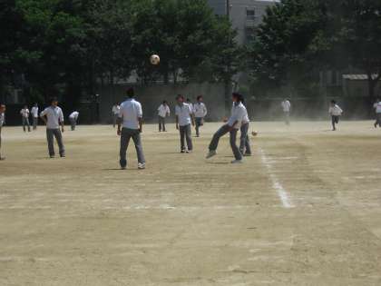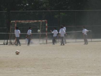 灼熱のグランドでもサッカーを楽しむたくましい生徒たちが山中の誇りです。