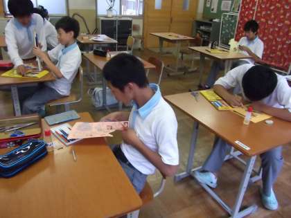 5時間目、8組は七夕の短冊作りでした。星の形に色を塗(ぬ)って、切り抜いて。みんな何を願ったのかな。先生も1枚参加させてもらいました。