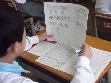 どの教科もそうですが、英語もテストになるとたくさんの単語を覚えておく必要があります。たとえば聞き取りテストに出ていた「second」という単語を覚えるために、20回、30回とノートに書く。でもこれは授業中にやるのではなく、みんなが家に帰って「家庭学習」で復習する勉強です。テストの時には、そういう地道にこつこつと粘り強い勉強が求められるのです。