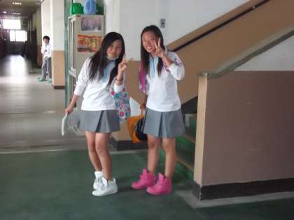 社会科はテストを返しての解説、緯度・経度・時差などなど。今しっかり理解しておきましょう。数学はテスト返しも終わり、確認の小プリントの後先へ進むようです。符号(+−)の付け間違いはもったいないミスですね。もう一枚はプールの授業のあと教室へ戻る二人組、「お願いしまーす」と頼まれてシャッターを。