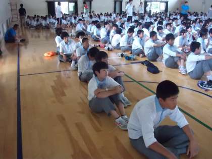 7月5日(金)6時間目の総合の時間に、KDDIから講師の方をお招きして「ケータイ教室」を行いました。思った以上にたくさんの生徒が携帯電話やスマートフォンを持っているようでした。きちんと使えば便利な携帯電話ですが、悪用したり、うっかり個人情報を載せてしまったりすると、とたんに大変なことになりますね。お話の中に携帯を使いながら自転車で歩行者にぶつかり大怪我をさせてしまい、裁判で損害賠償が5000万円という判決の事例もありました。まず、法律・条例を守る、社会のルールを守る、マナーをまもることが大切ですね。