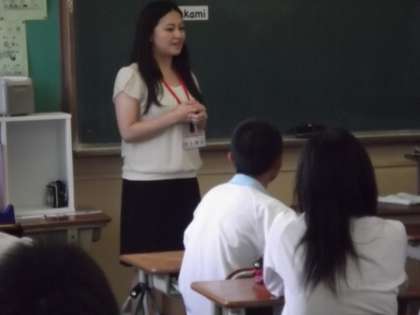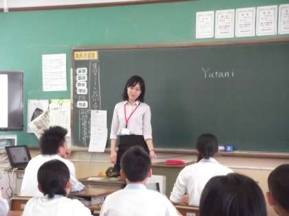 化学は理科室で、エアコンがないため暑い中での授業でしたが、みんな熱心に聞いてくれました。英語の授業では普段あまり見せないような笑顔があふれてました。
