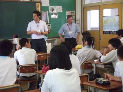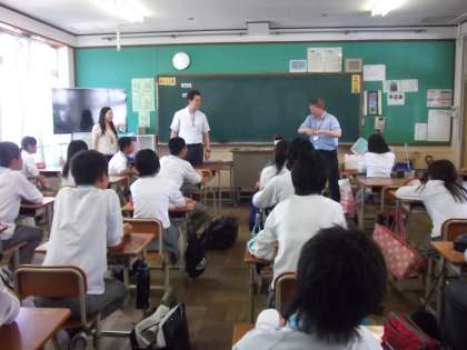 ALTの先生による掛け合いで会話がどんどん転げていき、生徒達もついつい引き込まれていったり。また、高校の説明(宣伝)もしっかりやっておられました。