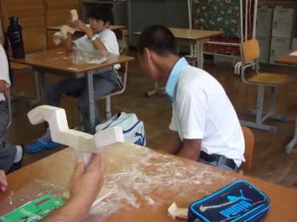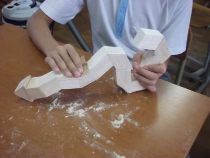 8組は美術の時間、クリエイトバルサという教材を使って、いろいろな形を創造します。