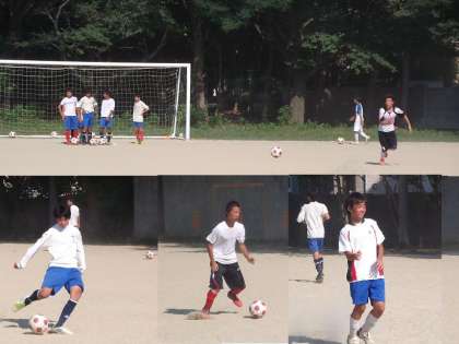 サッカー部はパスからのシュート練習、弾いたボールもあきらめずに最後まで。テニス部は13日が個人戦です。多くの人にとってこの日が最後になるかも知れません。一つでも多く試合が出来るように。一組でも多くブロック予選を抜けられるように!!
