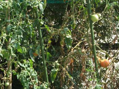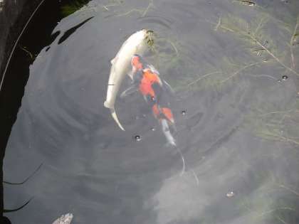 園芸部と8組で作っている畑でトマトが真っ赤になっています。バケツ稲も順調に育っているようです。池には教頭先生が育てた「クワガタ」の御礼として、大塚小学校から錦鯉が2匹やってきました。
